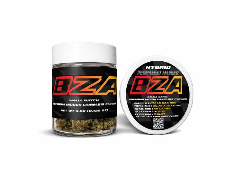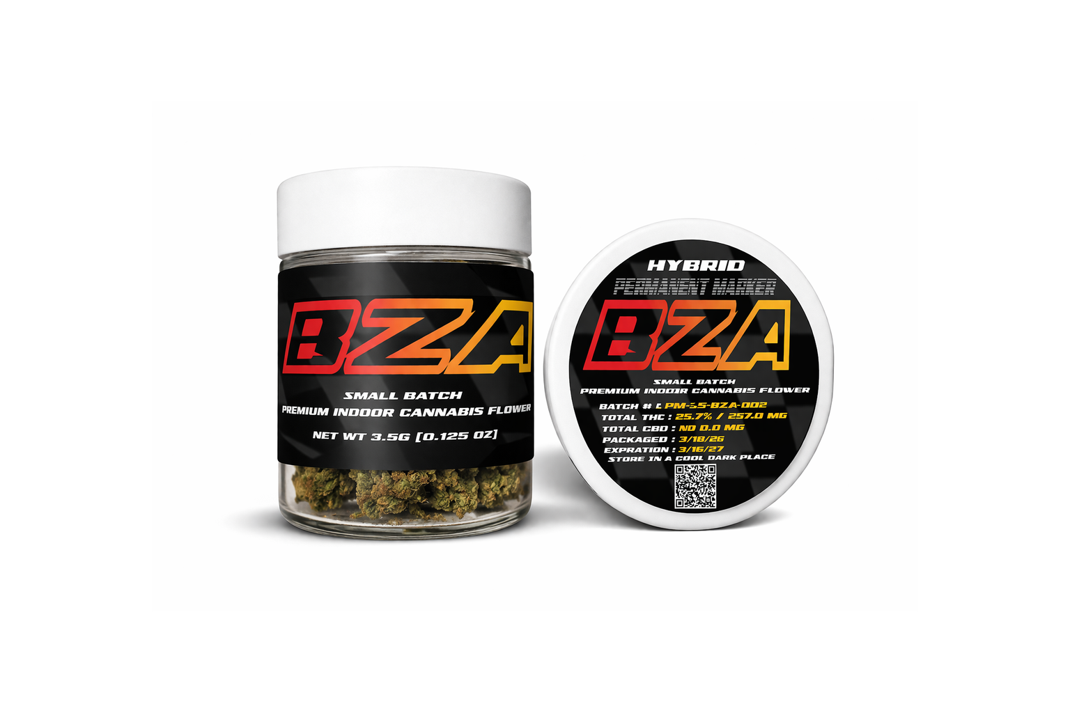 Permanent Marker is an indica-leaning hybrid testing at 25.7% THC with 3.34% terpenes, delivering a heavy, smooth smoke and a loud, signature aroma. It features a rich blend of gassy, sweet, and floral notes layered over a deep diesel backbone, with a flavor profile of gas, sweet, floral, and diesel. Grown in small batches for maximum terpene expression and premium bag appeal, its effects hit fast with euphoria before settling into a calm, relaxed body feel.