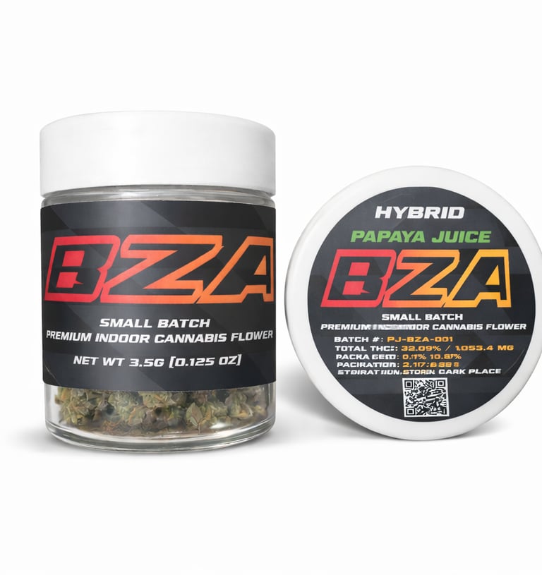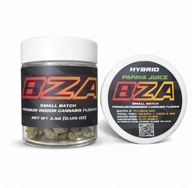 Papaya Juice opens with a potent dry pull of deep papaya and subtle black licorice, shifting into an intense wave of sour tropical papaya once lit. Its dense, resinous buds release a funky, sweet, fruity aroma layered with rich tropical notes. The effects are soothing and euphoric, easing into a calm, sleepy finish that delivers balanced relaxation while remaining smooth enough for daytime use.